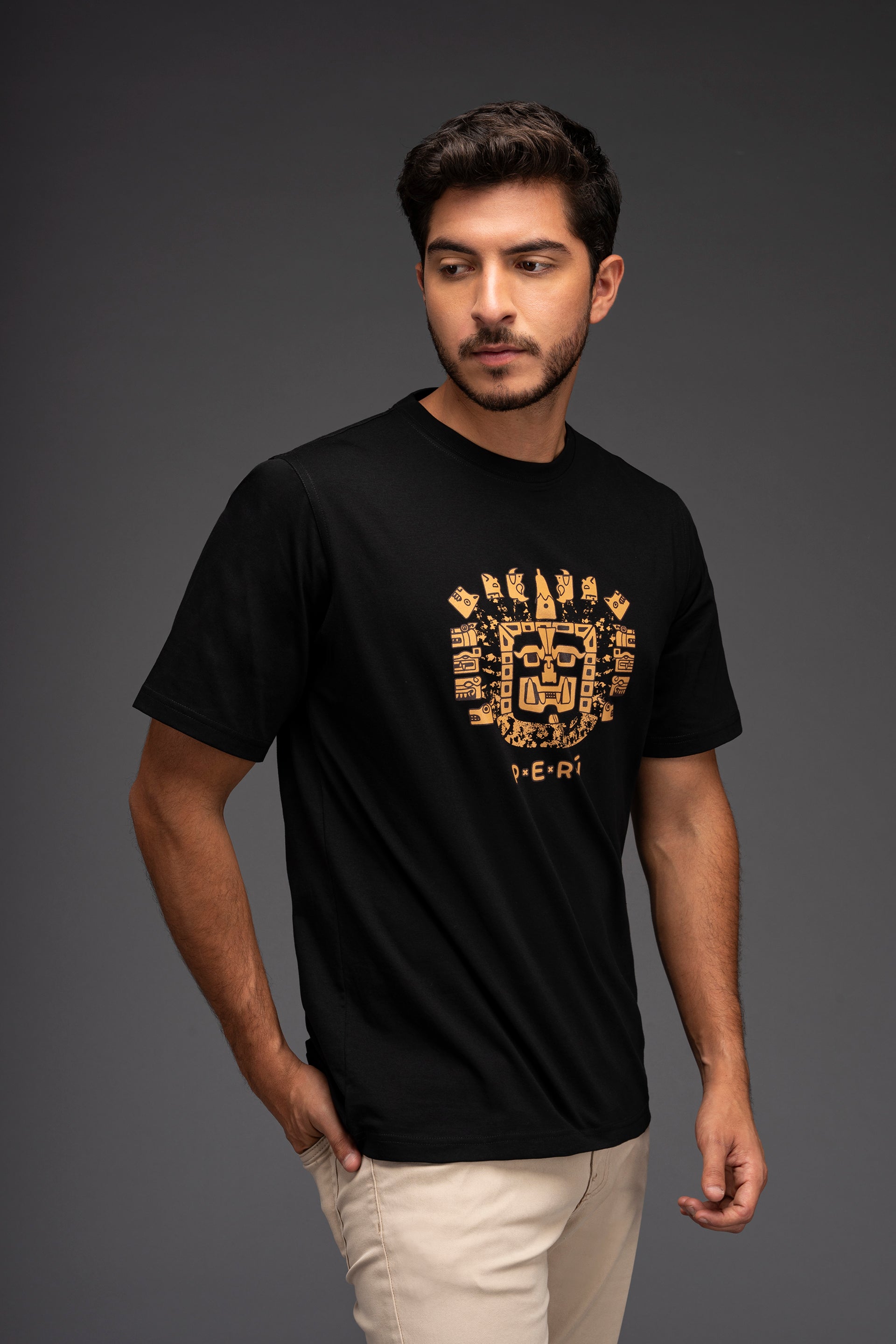 Polo para hombre 100% algodón pima con estampado. Diseño inspirado en el dios incaico "Wiracocha".