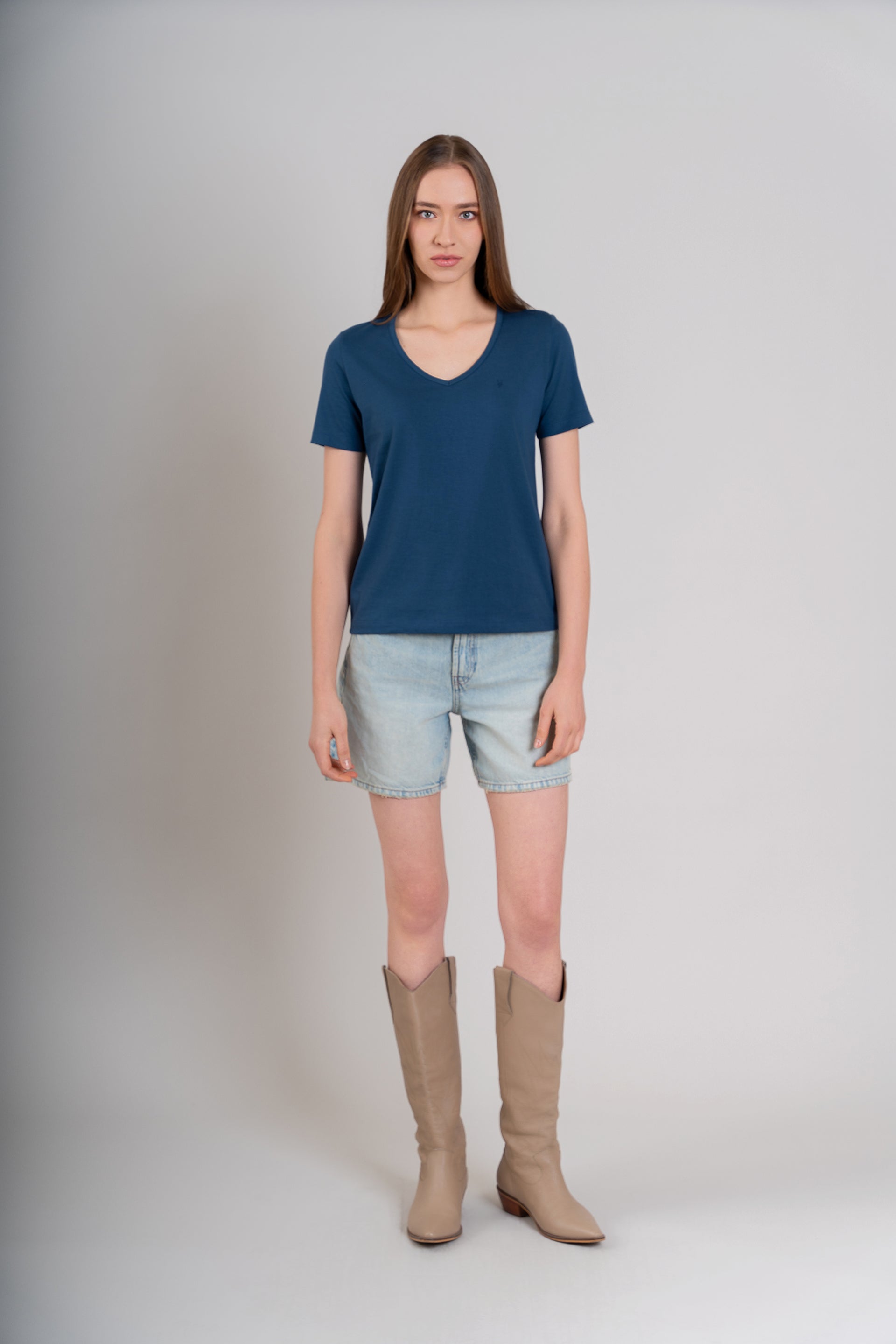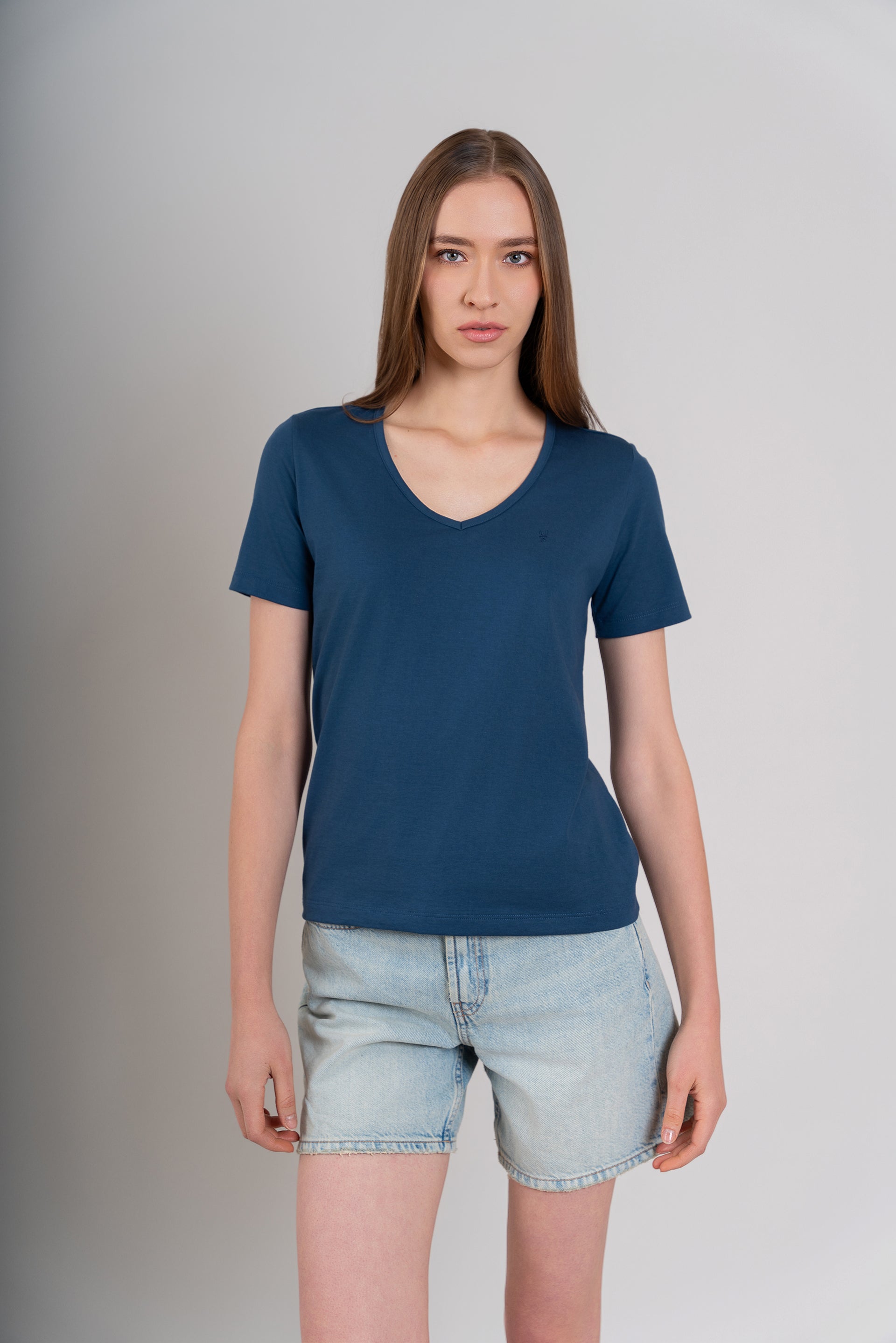 POLO MUJER CUELLO V MC - PIMA | AZUL